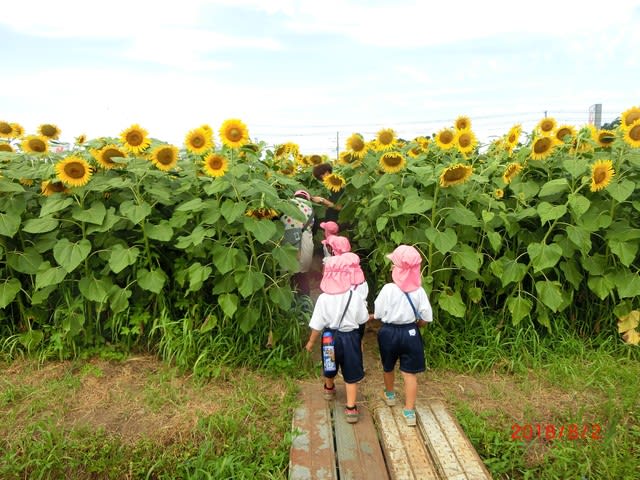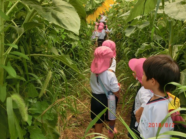 3歳児クラスの子どもたちがひまわり迷路に挑戦してきました!