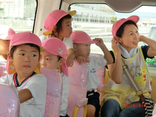 移動中のバスの中では、ドキドキワクワクの子ども達。