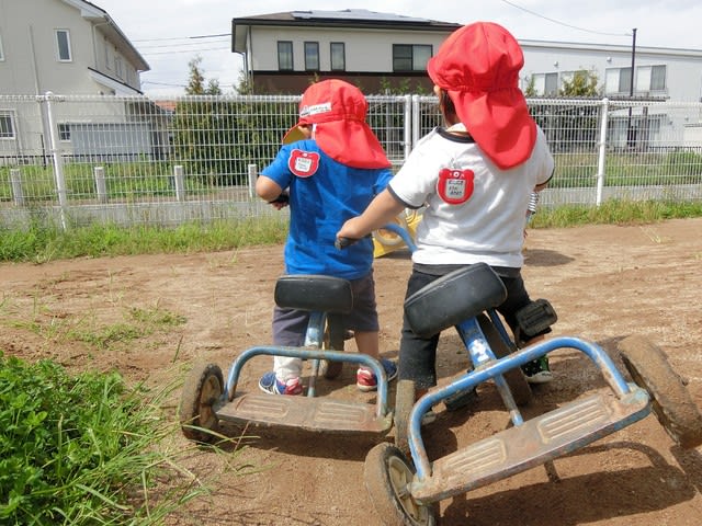 三輪車に乗って探索あそびをしたりと好きな遊びに夢中になっていました。