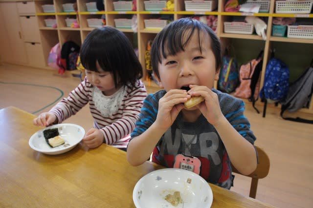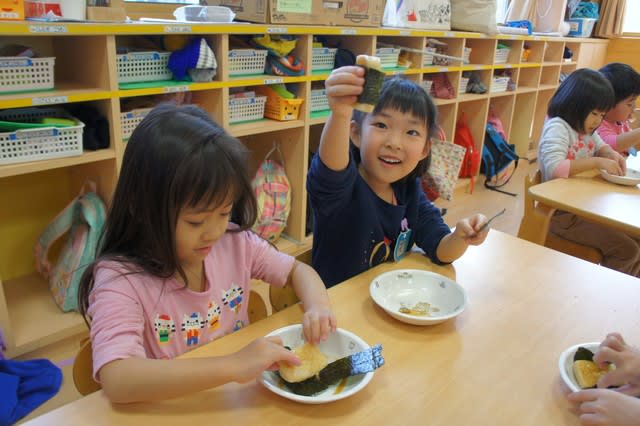 4歳児5歳児は、自分達で海苔を巻いていましたよ!!