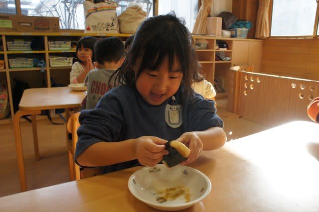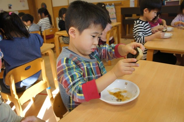 先生の「もう柔らかくなってきたから食べられそう!!」の声に「ヤッター!!」