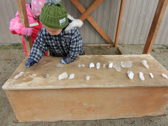 園庭の水たまりが凍ったもの。