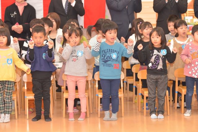 在園児を代表して、4月に年長になったばかりの子ども達が、みんなに元気いっぱいの
