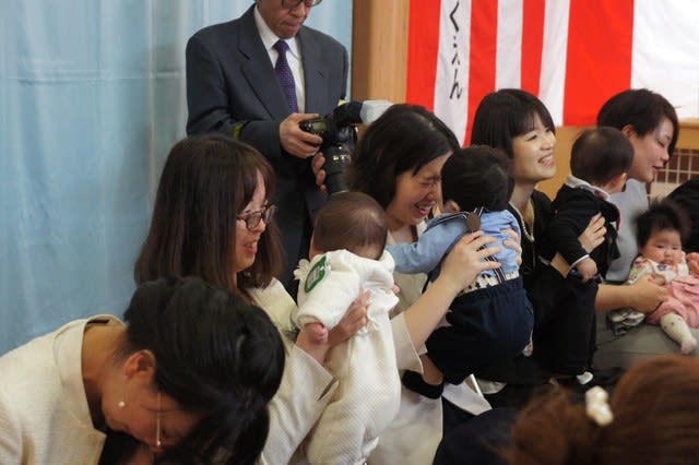 お家の方のお膝の上で安心した表情で式典がスタートしました。