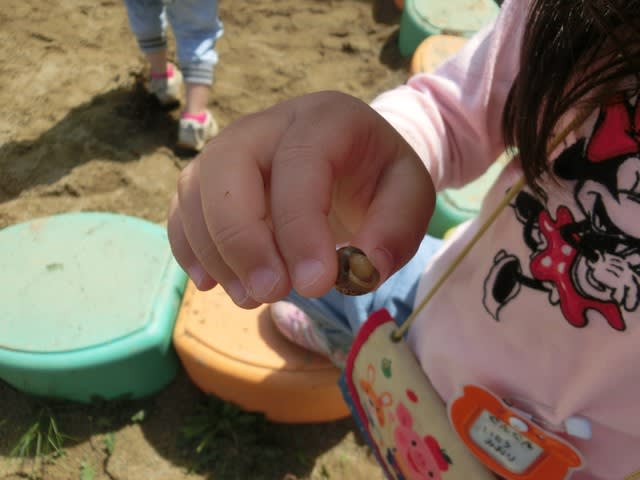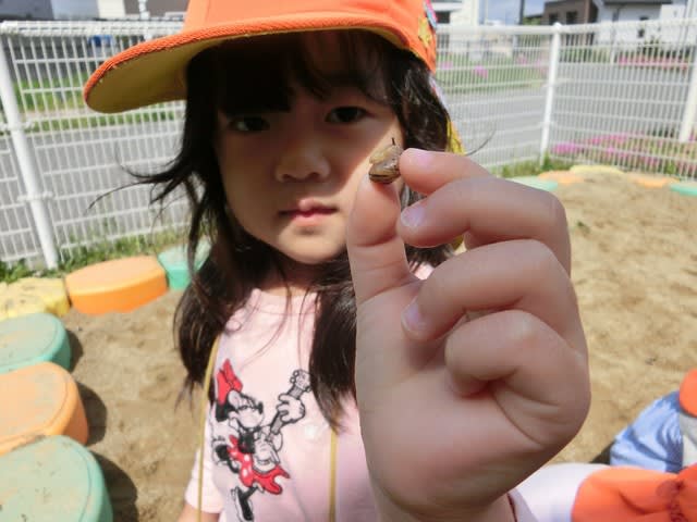 「見て見て~!カタツムリさん見つけたよ!」と周りのお友達にも教えてくれました♪