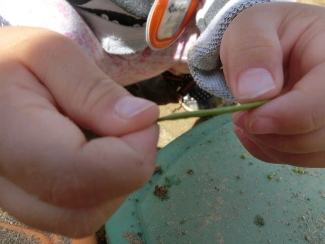 なんとカラスノエンドウの小さな実を取って、中の種子を大事そうに集めていました。