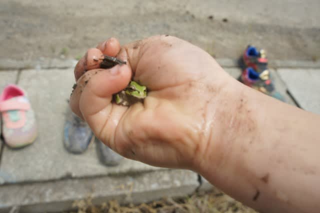 虫が大好きな子ども達は、カエルやアメンボを見つけると大喜び!!