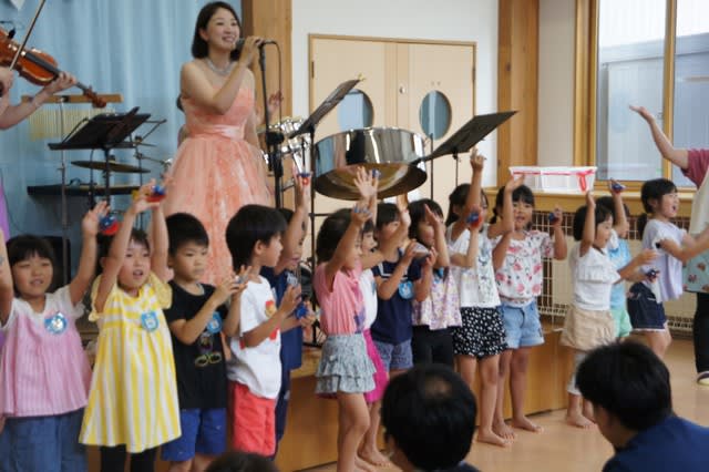 とっても素敵なドレス姿に子ども達もちょっぴりドキドキしている様子でしたが、一曲目が始まると表情も柔らかくなり、知っている曲が流れると自然と口ずさんでみたり・・・