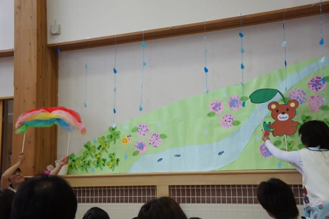♪「あめふりくまのこ」ではペープサートに合わせて曲が流れていきます。