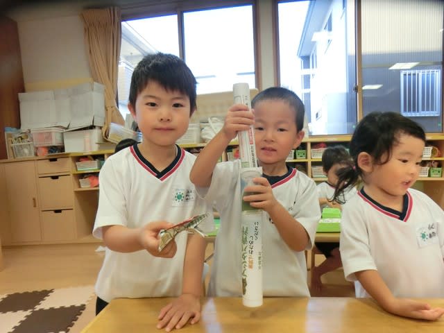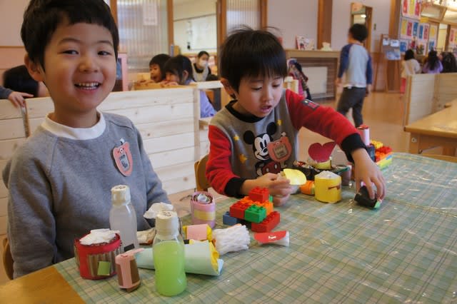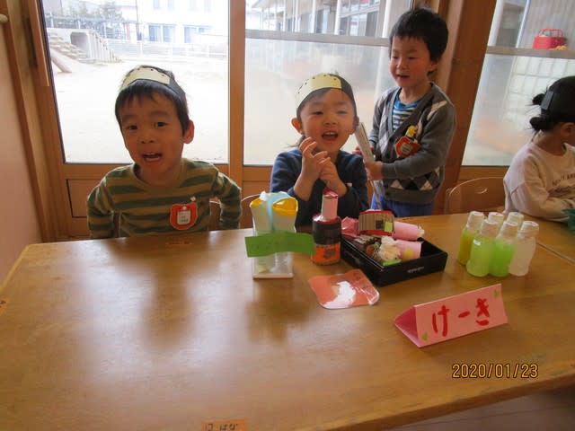 食べ物もたくさん作ったということで、「お客さんを呼んでお店屋さんごっこをしてみよう!」
