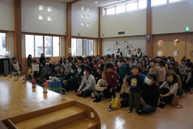 たくさんの保護者の方々に集まっていただき、いよいよ進級おめでとう会が始まります!