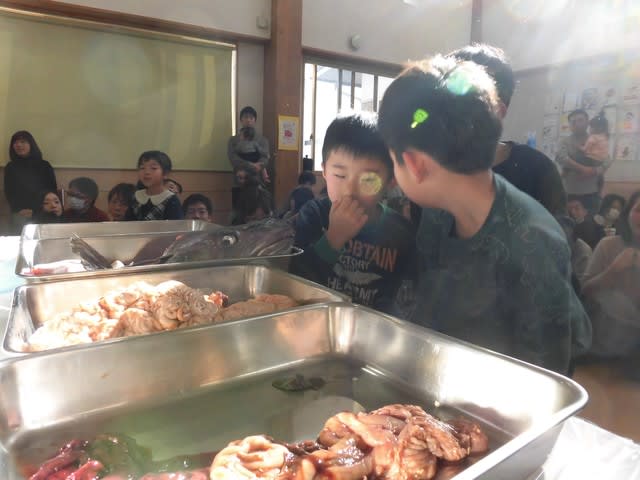 一つ一つの部位が切り分けられ、子ども達の前に運ばれていきます。