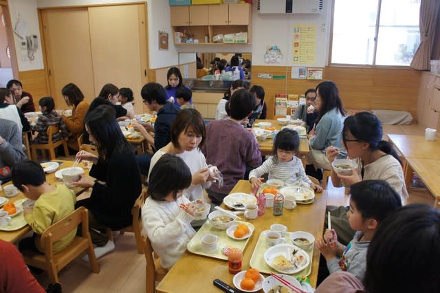 それぞれのクラスに分かれて、保護者の方同士、会話を楽しんだり、また給食を味わいながら、楽しい時間となりました。