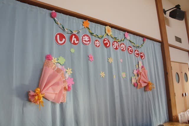 今日は保護者の方々と一緒に、3、4、5のお友だちの進級をお祝いしようという日、「進級おめでとう会」の日です。