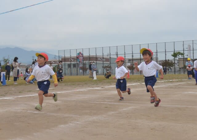 走ることを楽しんでいる4歳児かけっこ。