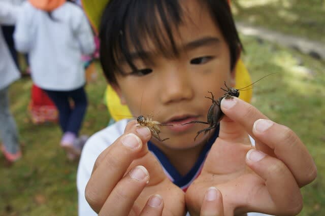 子ども達に負けじと元気いっぱい飛び跳ねている「コオロギ」