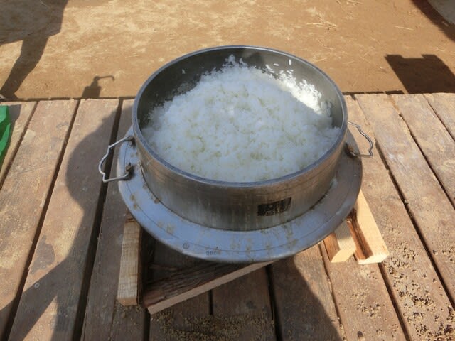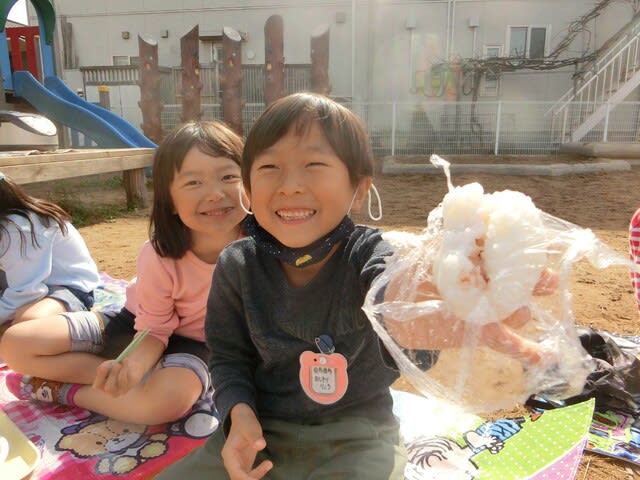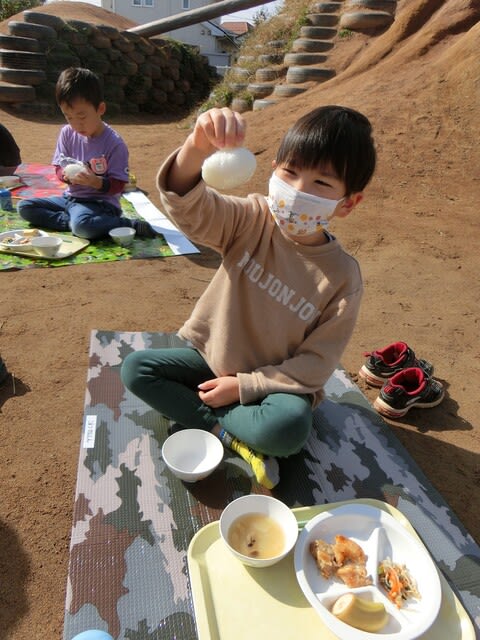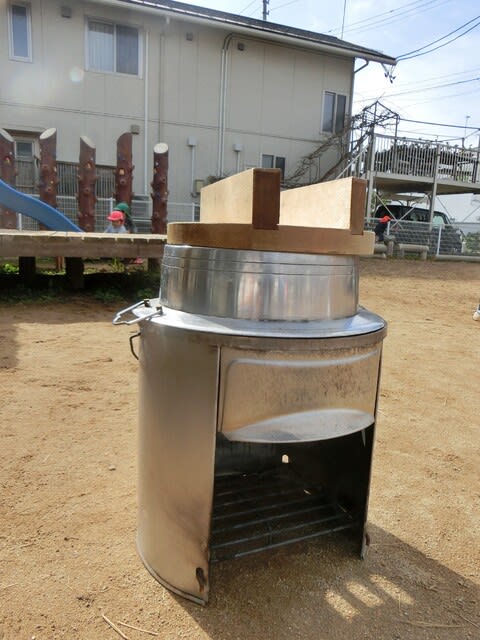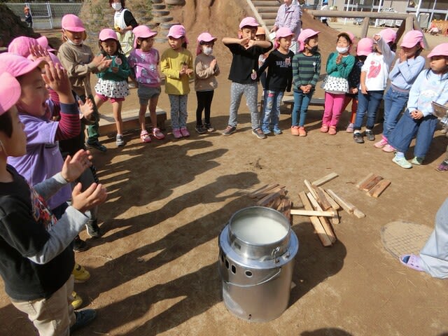 ホカホカの湯気と共に、炊き上がった時のおいしそうな匂いが園庭に広がります。