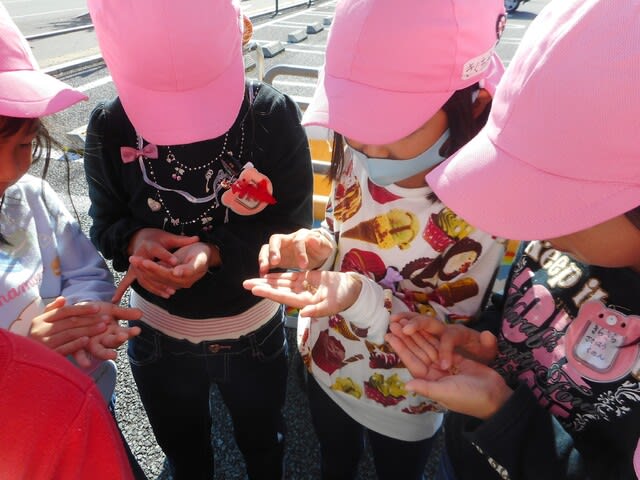 手のひらに乗せた玄米を、まじまじと見つめていた子どもたちです。