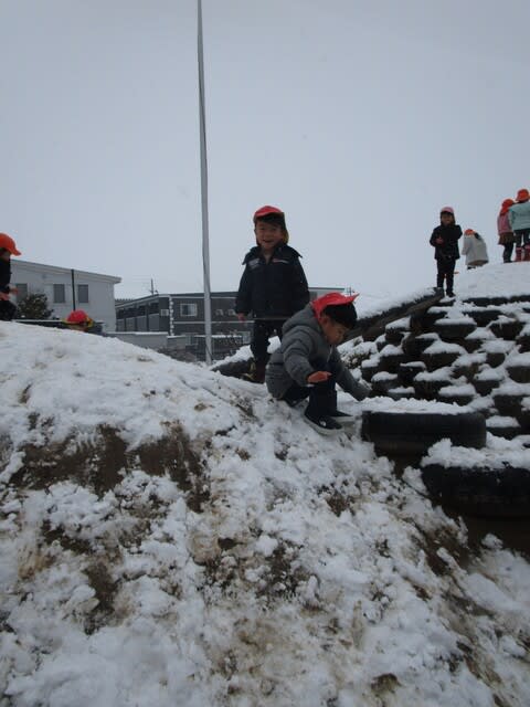本格的に雪が積もりました。朝から雪を見て喜ぶ表情や