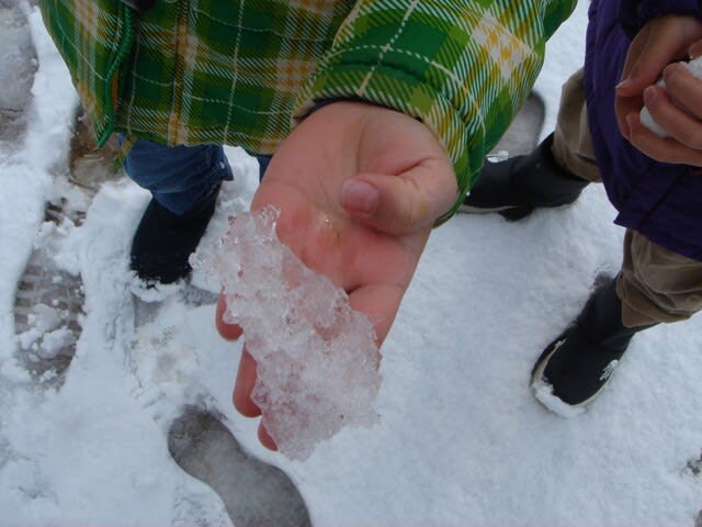 「見て~かたい~!凍っている」