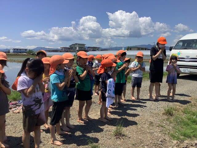 苗も植え終わり、最後に美味しいお米がたくさん収穫できますように・・・と願いました。