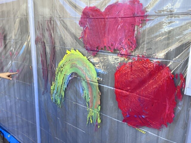 指で絵の具をなぞることで、線を描けることにも気付きました。