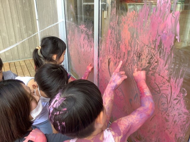 絵の具に慣れ親しみ、観測の面白さを味わう中で、子ども達の動きもよりダイナミックになっていきます。