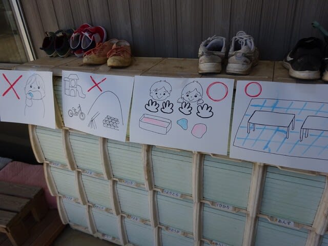子ども達には、視覚を通して伝わりやすいように、約束ごとを絵に描いてみました。