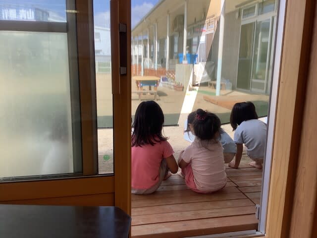 また外で遊んだときも強い日差しをよけて遊びの途中で一息つくように座ったり・・・
