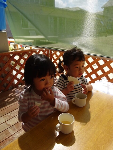 戸外の心地よい風を感じながら過ごしたり、またおやつを食べたりと、