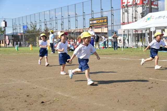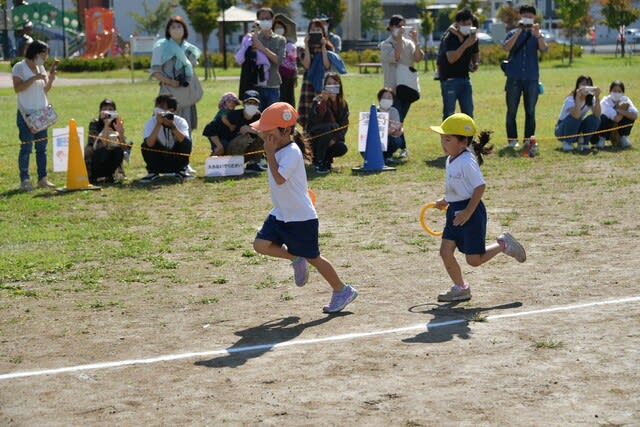 開会式が終わると、3歳児、4歳児のかけっこが始まります。