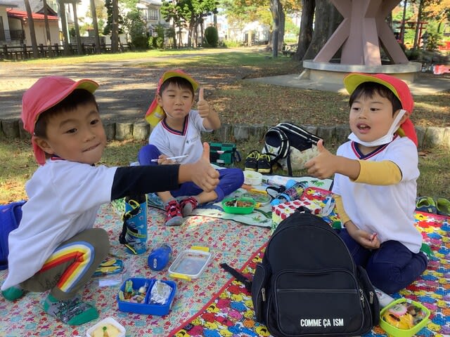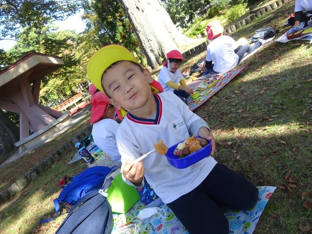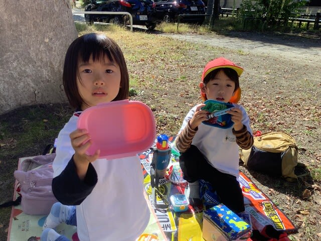 みんなで秋探しゲームをした後、次は、一番楽しみにしていたお弁当の時間がやってきました。