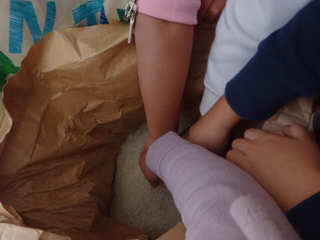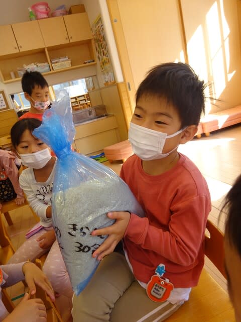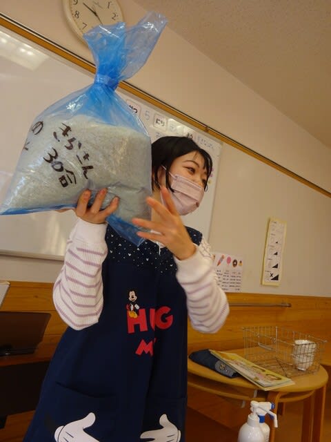 手に取ってみると、「重いよ~」「これからこのお米を食べるの?」