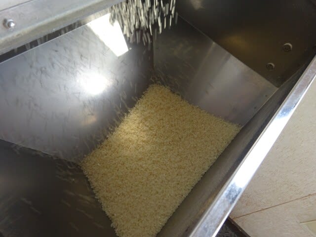 精米機に入れると、茶色から白いお米へと変化していきます。