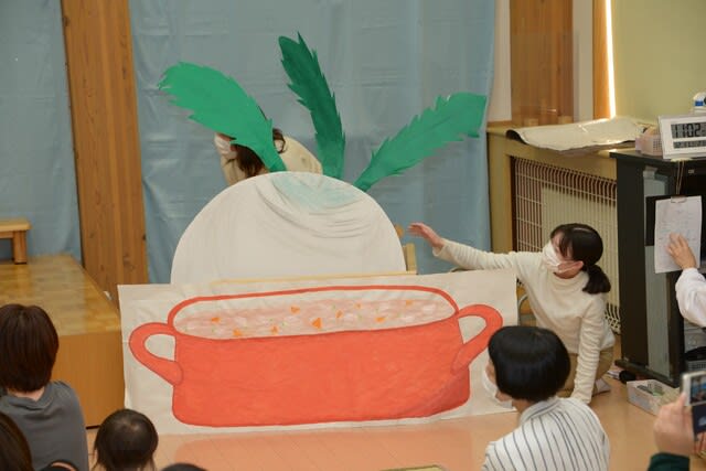 「うんとこしょ、どっこいしょ!」とそれぞれの役になりきって、言葉のかけ合いもありました。