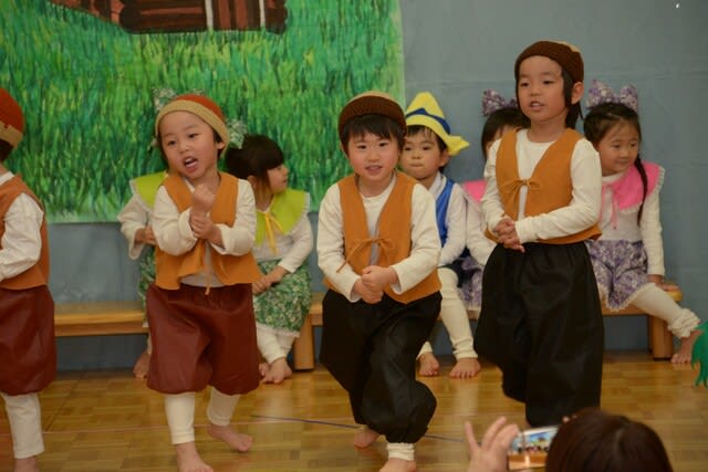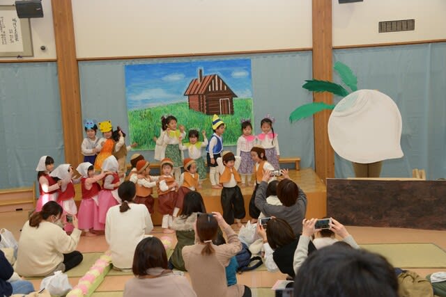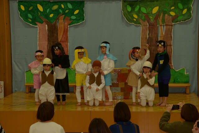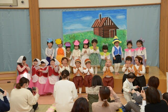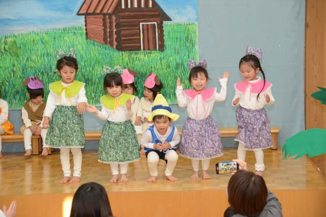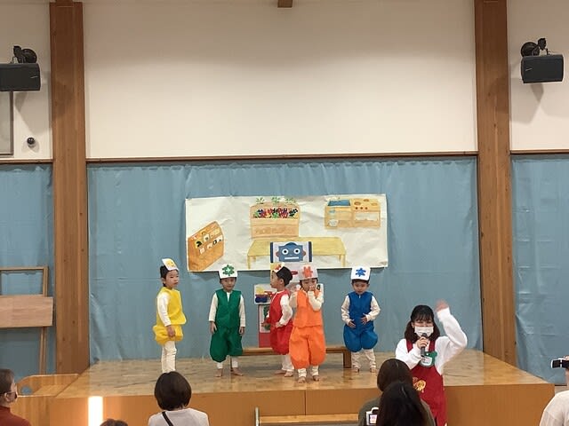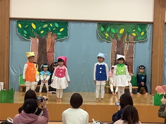 お家の方々に見守られながら、ステージ上で堂々と演じてくれた5歳児の子ども達。