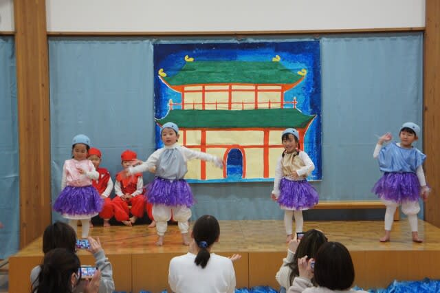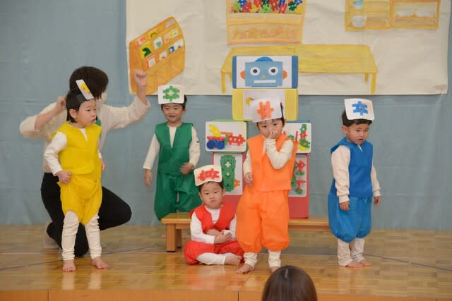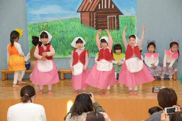 保育園で過ごす日常の一コマを場面ごとに表現し、保護者の方々に見ていただけた時間になったように思います。