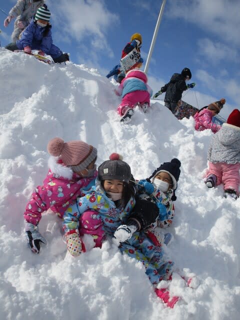 年末から降り続き、たくさん積もった雪の中、今日は雪遊びを思いっきり楽しみました!