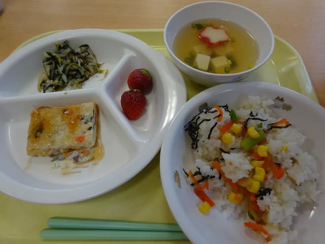 鮮やかな色合いの給食に、