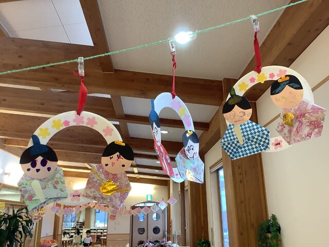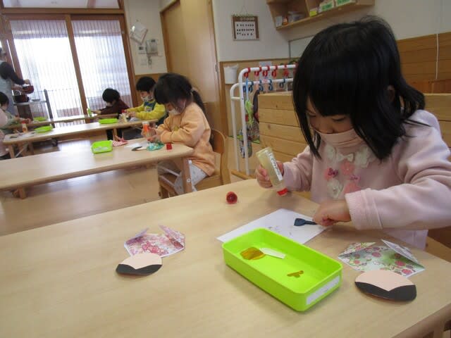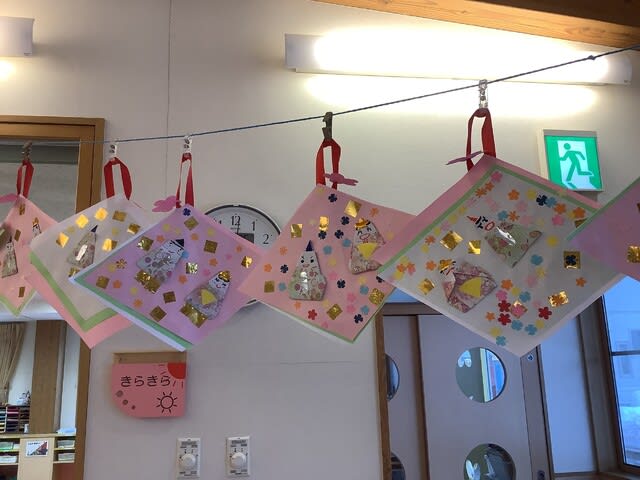 保育園でも、子ども達が元気で幸せに過ごせるよう、お祝いの気持ちや願いを込めて、それぞれの学年に合わせて製作を楽しみ、飾ることにしました。