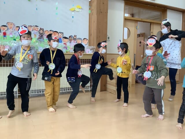 手作りメダルを胸に掛け、おわかれ会が始まりました。