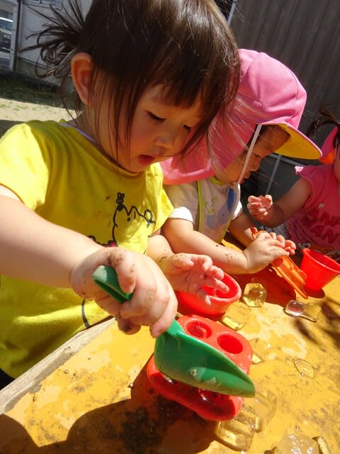 『水』は凍らせたり、混ぜ合わせることで、感触の変化を楽しむことができます。