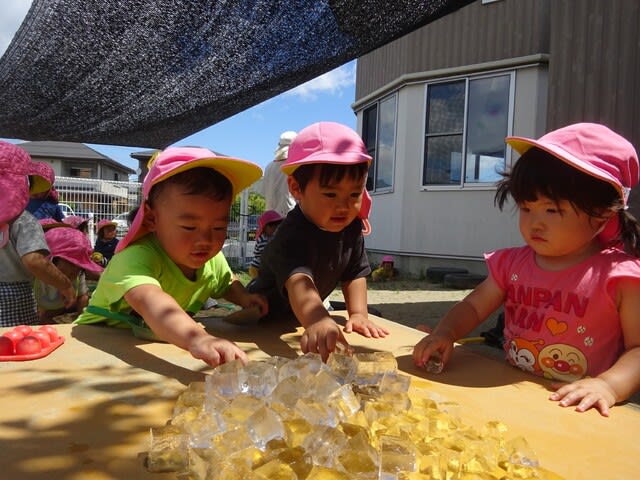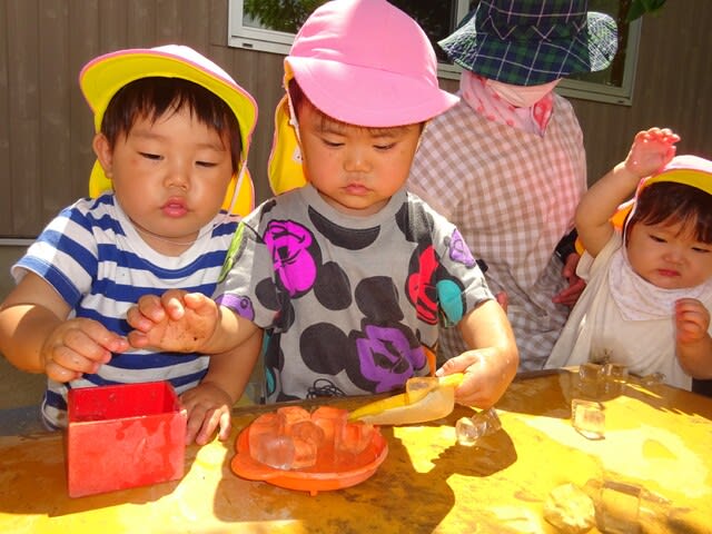 氷を冷たくて固いもの、当たり前のようですが、触ったことがない子ども達は分かりません。