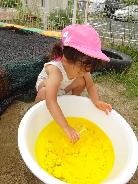 最後は色水遊びです。