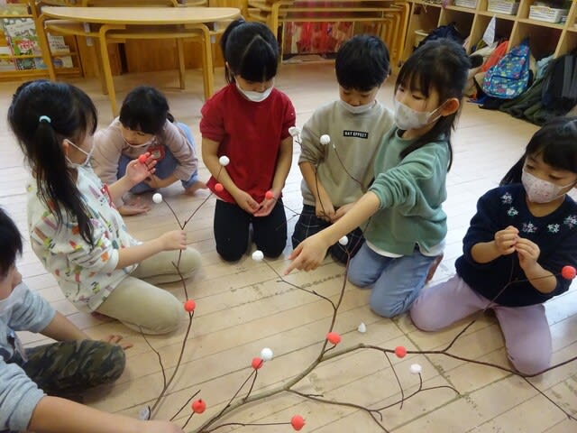 みんなで力を合わせて作った団子木は、一段と鮮やかに子ども達の目に映ったことでしょう。