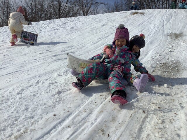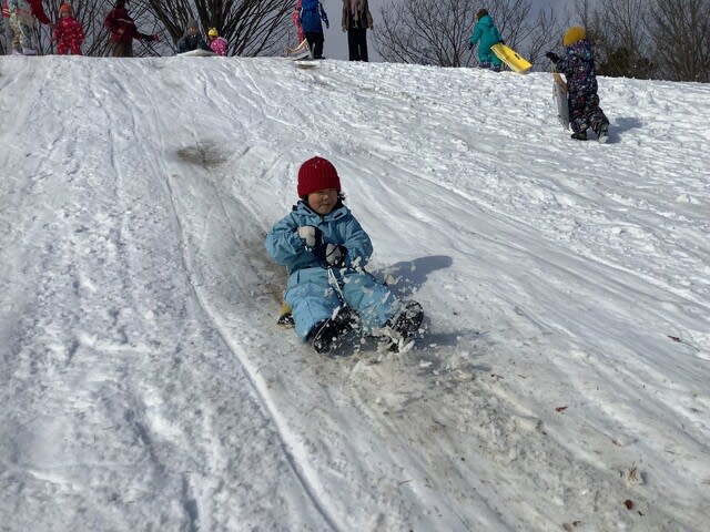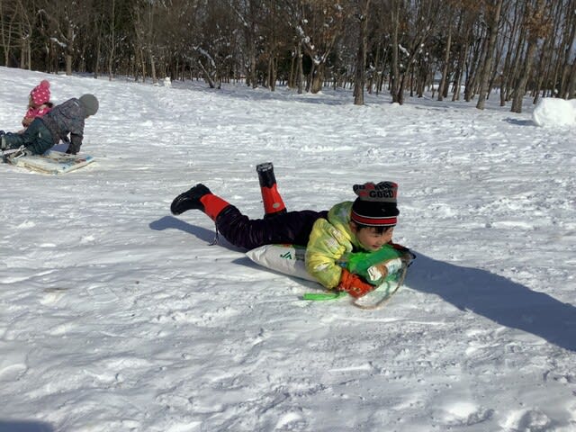 天候にも恵まれ、青空の下で思いっきりそり遊びを楽しんできました。