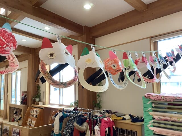 「鬼さんが来るの?」と緊張するお友達もいましたが、手作りの豆入れやお面などを作り、豆まきの準備は万端!