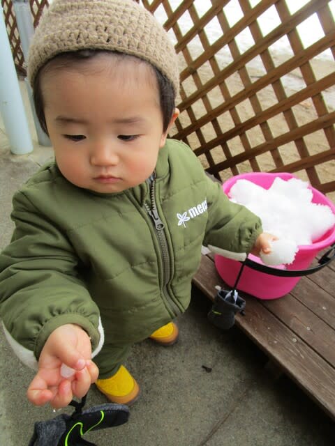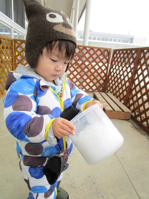 雪を容器に入れてみたり、