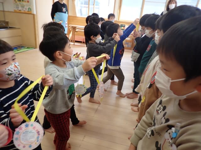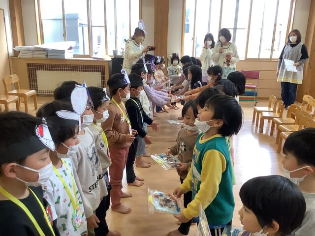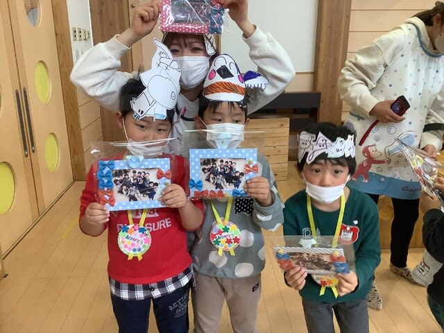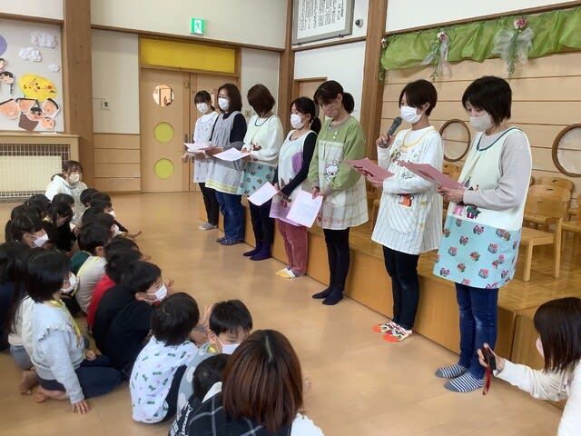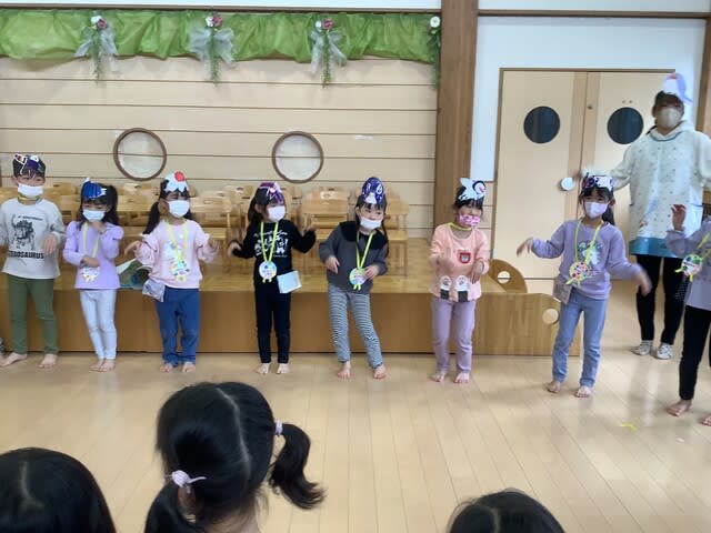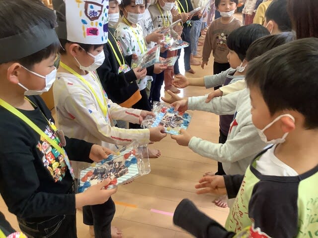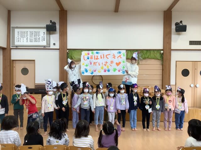 マスクも外せない状況も続きましたが、どの子も目をキラキラと輝かせ、今日のお別れ会に参加していた子ども達の目を見ていると、園を旅立つことへの寂しさを感じながらも、同時に充実した園生活を過ごし、立派に成長したことを感じた会となりました。