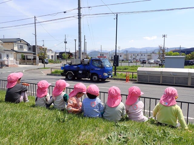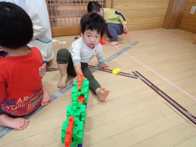 2歳児のお友達は、散歩のときもお部屋でも、はたらくくるまが大好きな子ども達です♪